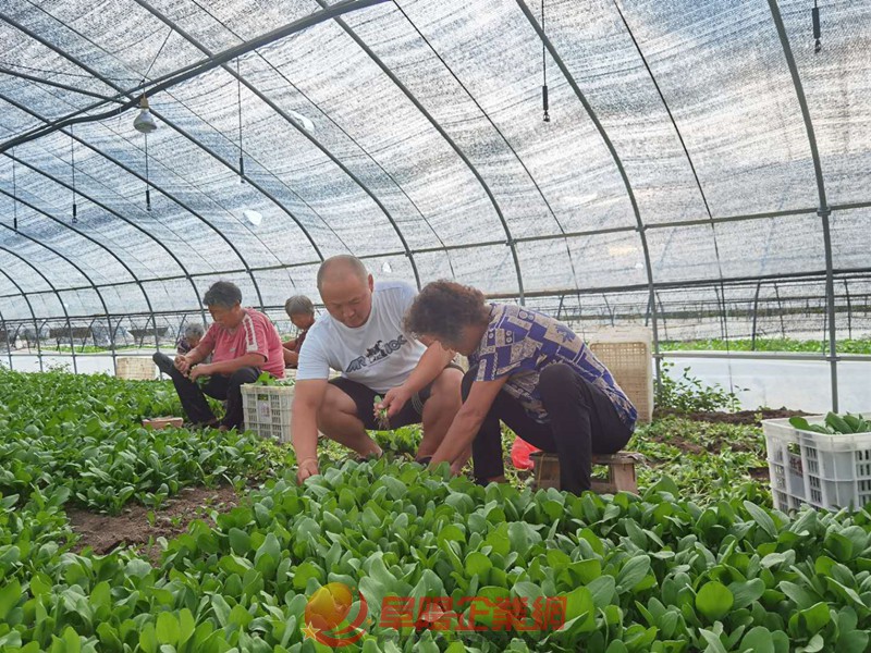 割去菜根,細(xì)繩纏繞成捆,一把新鮮的雞毛菜在脫貧戶張其珍手中快速打包成型。“這里干的活兒沒那么重,就是收菜、給月季除草,大家一起邊干邊聊,一天很快就過去了,也不覺得累。”68歲的張其珍手腳利索,已經(jīng)在金豐家庭農(nóng)場(chǎng)干了一年多,每個(gè)月的收入在1500元左右,還不耽誤帶孫子。