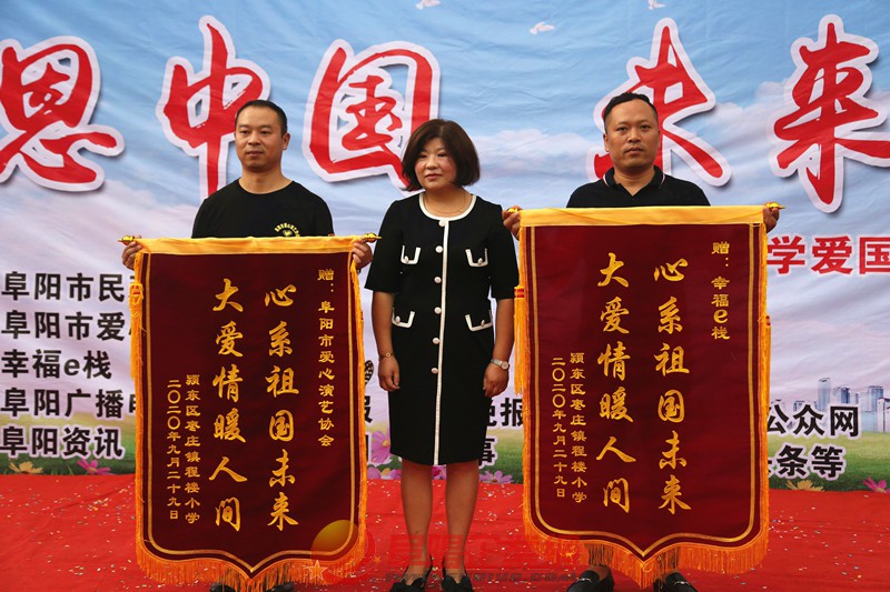 程樓小學(xué)校方負(fù)責(zé)人還分別為阜陽(yáng)市愛(ài)心演藝協(xié)會(huì)和愛(ài)心企業(yè)贈(zèng)送了愛(ài)心錦旗,感謝他們對(duì)學(xué)校孩子們的關(guān)心、關(guān)愛(ài)和關(guān)懷之情。