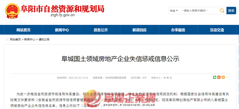 1月21日,阜陽市自然資源和規(guī)劃局公布《阜城國土領(lǐng)域房地產(chǎn)企業(yè)失信懲戒信息公示》。公示顯示,因拖欠土地使用權(quán)出讓金,阜陽錦創(chuàng)房地產(chǎn)有限公司被納入阜城國土領(lǐng)域房地產(chǎn)企業(yè)失信懲戒名單,在足額繳納土地使用權(quán)出讓金以及違約金前,自然資源和規(guī)劃部門暫不受理其新的建設(shè)用地申請。 詳情如下: 為進一步推進自然資源市場信用體系建設(shè),規(guī)范自然資源市場信用管理,健全自然資源市場信用獎懲機制,根據(jù)國家社會信用體系建設(shè)有關(guān)政策文件要求和《安徽省自然資源市場信用管理實施辦法》(皖自然資規(guī)〔2020〕6號)相關(guān)規(guī)定,現(xiàn)將阜陽錦創(chuàng)房地產(chǎn)有限公司納入阜城國土領(lǐng)域房地產(chǎn)企業(yè)失信懲戒名單。信息公示如下(名單附后)。 此前,1月20日,因存在未批先建的違法行為,阜陽錦創(chuàng)房地產(chǎn)有限公司的“禧悅江山”項目被阜陽市自然資源和規(guī)劃局公示。 具體如下: 阜陽錦創(chuàng)房地產(chǎn)有限公司的“禧悅江山”項目位于阜陽市潁東區(qū)東湖路北側(cè)、東平路西側(cè)。我局在對項目現(xiàn)場查勘時發(fā)現(xiàn)該項目1#住宅樓、2#住宅樓、3#住宅樓、5#住宅樓存在未批先建的違法行為,經(jīng)復(fù)核1#住宅樓、2#住宅樓、3#住宅樓、5#住宅樓現(xiàn)狀位置與規(guī)劃總平面圖基本一致。根據(jù)《關(guān)于城鄉(xiāng)規(guī)劃公開公示的規(guī)定》,現(xiàn)將該處違法建設(shè)進行公示。 公示期從2021年1月20日至2021年1月28日?!办麗偨健表椖恐苓吶罕娂皢挝蝗鐚Ρ敬喂緝?nèi)容有異議,請在公示期內(nèi)將書面意見送達我局,逾期視為同意。公示期滿后,我局將依據(jù)《安徽省城鄉(xiāng)規(guī)劃條例》規(guī)定,對該公司“禧悅江山”項目違法建設(shè)性質(zhì)進行認定,并抄告市城市管理行政執(zhí)法局對該項目進行處罰。待市城市管理行政執(zhí)法局處理結(jié)束后,辦理相關(guān)規(guī)劃手續(xù)。如因版面有限無法看清,可到項目現(xiàn)場及三處公示欄(市城市規(guī)劃展示館、清河廣場、東三角公園)或我局查詢。 來源:阜陽市自然資源和規(guī)劃局 |