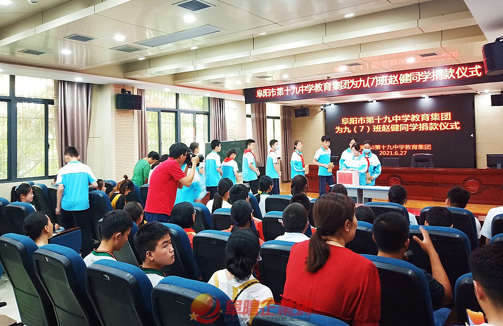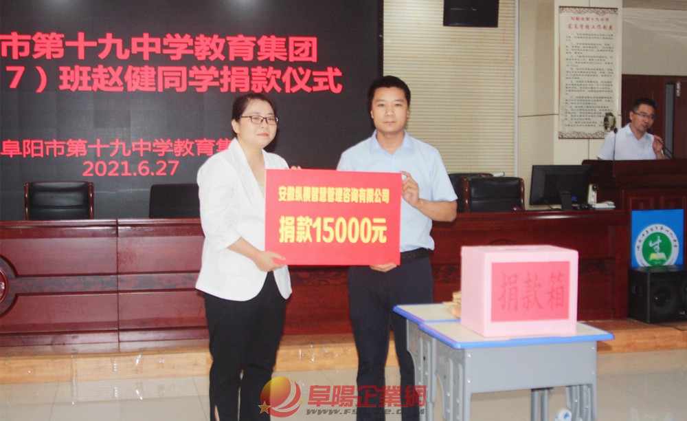 趙健是阜陽(yáng)十九中九(7)班學(xué)生,5月31日,趙健因身體不適,到醫(yī)院檢查,被醫(yī)院確診為急性淋巴細(xì)胞白血病。當(dāng)醫(yī)生告知治療費(fèi)用至少需要50多萬(wàn)時(shí),對(duì)于這個(gè)原本就不富裕的小家庭來(lái)說(shuō)不啻于晴天霹靂。趙健的父母常年在外打工,此次為了給趙健籌措治療費(fèi)用,借遍了所有親朋好友,天天以淚洗面,已經(jīng)到了山窮水盡的地步。 阜陽(yáng)十九中教育集團(tuán)領(lǐng)導(dǎo)得知這一情況后,立即號(hào)召全體師生為其捐款。學(xué)校黨總支、工會(huì)、團(tuán)委、學(xué)生處、各年級(jí)(組)第一時(shí)間發(fā)出了愛(ài)心捐款倡議書(shū),學(xué)校領(lǐng)導(dǎo)班子帶頭進(jìn)行捐款,全校師生、員工、學(xué)生家長(zhǎng)和社會(huì)愛(ài)心企業(yè)紛紛響應(yīng),積極捐款獻(xiàn)出一份愛(ài)心。 6月27日下午,愛(ài)心募捐現(xiàn)場(chǎng),阜陽(yáng)十九中教育集團(tuán)、學(xué)生家長(zhǎng)、愛(ài)心企業(yè)慷慨解囊,為趙健同學(xué)共募善款245262.9元。 其中,安徽縱橫智慧管理咨詢有限公司捐款15000元,彰顯了愛(ài)心企業(yè)的責(zé)任擔(dān)當(dāng)和無(wú)限大愛(ài)。 據(jù)安徽縱橫智慧管理資詢有限公司總經(jīng)理湯德付介紹,該公司隸屬于北京縱橫智慧管理咨詢有限公司,是一家集國(guó)學(xué)教育培訓(xùn)、教育咨詢、企業(yè)策劃、圣賢商學(xué)院等為一體的集團(tuán)公司。 此次通過(guò)媒體了解到趙健的病情后,公司領(lǐng)導(dǎo)主動(dòng)和校方領(lǐng)導(dǎo)取得聯(lián)系,決定對(duì)趙健同學(xué)進(jìn)行愛(ài)心捐助。15000元,雖然錢(qián)數(shù)不多,但也算是公司為孩子盡一份綿薄之力。面對(duì)無(wú)情病魔,希望有更多的愛(ài)心企業(yè)和愛(ài)心人士能為趙健同學(xué)伸出援助之手。只要人人都獻(xiàn)出一點(diǎn)愛(ài),世界將變成美好的人間! 費(fèi)之路 趙巖 文/攝 |
