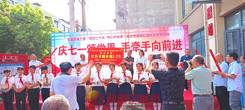 慶七一頌黨恩,手牽手向前。6月28日上午,阜陽市新華書店總經(jīng)理丁勇,阜南縣委常委、鹿城鎮(zhèn)黨委書記王振,阜南縣關(guān)工委主任楊文久,阜南縣稅務(wù)局黨委書記、局長、關(guān)工委名譽(yù)主任任東堂,縣稅務(wù)局關(guān)工委第一主任陳曙,阜南縣新華書店經(jīng)理陳立等一行走進(jìn)鹿城鎮(zhèn)紅旗社區(qū),并為紅旗社區(qū)捐贈(zèng)2.2萬余元的紅色書籍。 捐贈(zèng)現(xiàn)場(chǎng),縣稅務(wù)局關(guān)工委“五老”志愿者,協(xié)同配合縣委組織部、鹿城鎮(zhèn)、二小、皖寶酒廠等關(guān)工委“五老”志愿者,獻(xiàn)上“沒有共產(chǎn)黨就沒有新中國”等歌曲暨相關(guān)節(jié)目。(田永濤) |