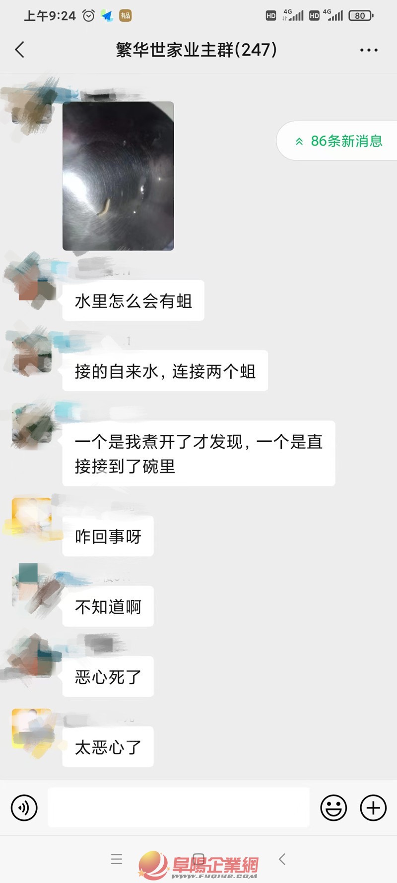7月20日,家住阜陽(yáng)繁華世家小區(qū)的業(yè)主朱女士向媒體爆料,早上在打開水龍頭接水的時(shí)候竟然在水里發(fā)現(xiàn)了兩條“活物”。 發(fā)現(xiàn)情況后,出于對(duì)小區(qū)各位居民的健康著想,朱女士第一時(shí)間就把情況發(fā)到業(yè)主群,在撥打當(dāng)?shù)刈詠硭镜耐对V電話的同時(shí)把情況也告之了小區(qū)物業(yè)工作人員。 據(jù)朱女士介紹,自來水公司接到她反映的情況后聲稱不可能有這種情況發(fā)生,說有可能是業(yè)主家水管潮濕造成的。讓業(yè)主自己用84消毒液倒進(jìn)地漏,然后用棉簽擦拭水龍頭口子。有可能是因?yàn)橄奶斐睗?,地漏和水管因潮濕而滋生的這種東西。而且又說每年都會(huì)有幾個(gè)人打公司電話反映這個(gè)情況,都是因?yàn)闃I(yè)主家里潮濕造成的,自來水廠的水都是好的,沒問題的。 前面說此種事情不可能發(fā)生,后面又說每年都會(huì)有幾個(gè)人打電話反映這種情況、、、 朱女士說,如果是潮濕造成的,那屋里應(yīng)該有很多,可能不止這兩條,但這兩條確確實(shí)實(shí)是從水龍頭流出來的。在朱女士的再三要求下,當(dāng)天下午,自來水公司的工作人員來到了朱女士家中。沒有做檢測(cè),打開水龍頭看過后,用84消毒液和棉簽擦拭了水龍頭的出水口,說出水口也挺干燥。然后又看了看衛(wèi)生間也沒找到原因,說她回去會(huì)把情況及時(shí)反映給領(lǐng)導(dǎo),讓業(yè)主在家接著觀察! 朱女士告訴媒體,現(xiàn)在她們家里人打開水龍頭時(shí)都有一種恐懼感,做飯洗漱都是到樓下打純凈水,生怕水里又掉出來什么東西。出于對(duì)市民飲水健康安全著想,還望有關(guān)監(jiān)管部門人員能實(shí)地走訪調(diào)查,從根本上解決問題,杜絕此種現(xiàn)象的再次發(fā)生,確保讓阜城廣大市民能吃上安全水、放心水。 |