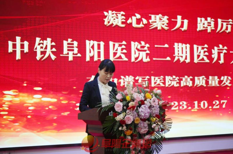 中鐵阜陽醫(yī)院院長呂鋒發(fā)表了熱情洋溢的歡迎致辭,感謝各級領導和各界朋友對醫(yī)院發(fā)展建設的關(guān)心和支持。他介紹了醫(yī)院二期項目的基本情況和下一步的發(fā)展思路,并呼吁醫(yī)院全體職工積極展現(xiàn)新作為,以勇?lián)】凳姑?,鑄就時代新功。