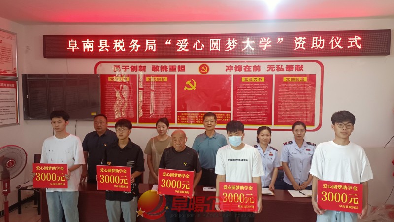 8月30日上午,阜南縣稅務(wù)局舉行“愛心圓夢(mèng)大學(xué)”助學(xué)金發(fā)放儀式,局機(jī)關(guān)黨辦、局關(guān)工委、王堰鎮(zhèn)政府等相關(guān)領(lǐng)導(dǎo)出席。 捐獻(xiàn)儀式上,出席活動(dòng)領(lǐng)導(dǎo)分別為縣稅務(wù)局駐村包點(diǎn)的王堰鎮(zhèn)張樓村和胡老村6名貧困大學(xué)生每人送上了3000元圓夢(mèng)資金。他們深情寄語(yǔ),希望這些莘莘學(xué)子能夠珍惜這份來(lái)之不易的關(guān)懷,將其轉(zhuǎn)化為學(xué)習(xí)的動(dòng)力,繼續(xù)在學(xué)業(yè)的征途中勇往直前。同時(shí)鼓勵(lì)學(xué)子們要一如既往地勤勉好學(xué),用實(shí)際行動(dòng)詮釋“知識(shí)改變命運(yùn)”的真諦,為黨和人民增光添彩,為祖國(guó)的宏偉藍(lán)圖添上自己絢爛的一筆。 田永濤 曾雪 文/攝 |