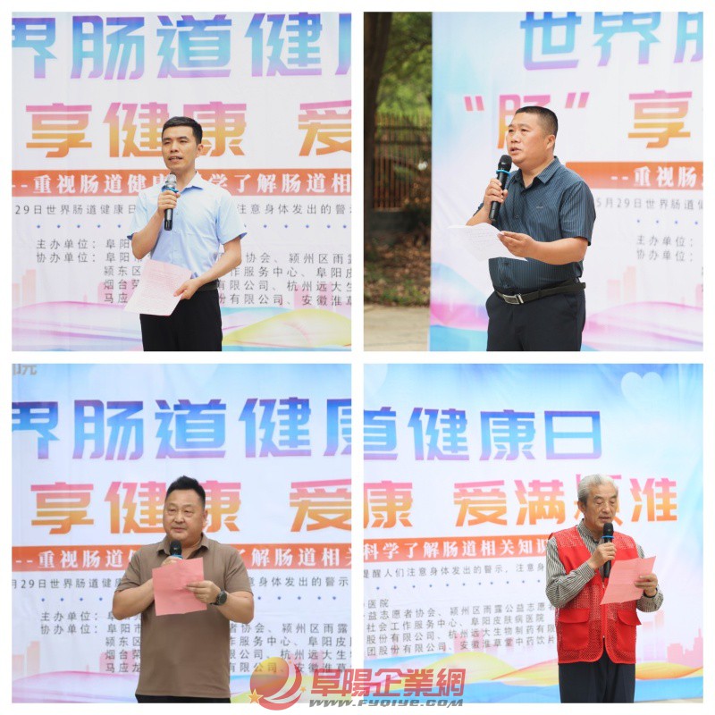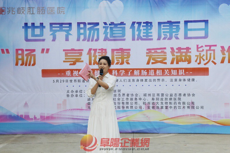 2025年5月24日,在第21個“世界腸道健康日”到來之際,由阜陽兆岐肛腸醫(yī)院主辦,阜陽市愛心公益志愿者協(xié)會、潁州區(qū)雨露公益志愿者協(xié)會、潁東區(qū)夕禾紅社會工作服務(wù)中心聯(lián)合協(xié)辦的“‘腸’享健康 愛滿潁淮”主題公益活動在阜陽兆岐肛腸醫(yī)院成功舉辦?;顒油ㄟ^健康宣講、公益倡議、文藝表演等形式,向市民普及腸道健康知識,傳遞健康生活理念,吸引了近百名市民參與。 多方聚力,共倡健康使命 活動伊始,阜陽兆岐肛腸醫(yī)院院長彭傳剛致歡迎辭。他強(qiáng)調(diào),腸道是人體重要的消化和免疫器官,呼吁公眾重視腸道健康篩查,做到“早預(yù)防、早發(fā)現(xiàn)、早治療”。潁州區(qū)衛(wèi)健委黨組成員、副主任邵炳凱在講話中指出,腸道疾病已成為威脅居民健康的常見問題,需通過科學(xué)宣教提升全民健康素養(yǎng)。阜陽市愛心公益志愿者協(xié)會會長李文標(biāo)則從公益角度倡議社會各界關(guān)注弱勢群體健康需求,攜手構(gòu)建健康支持網(wǎng)絡(luò)。協(xié)會副會長韓明忠現(xiàn)場宣讀《腸道健康倡議書》,號召市民養(yǎng)成均衡飲食、規(guī)律作息、定期體檢的良好習(xí)慣。
